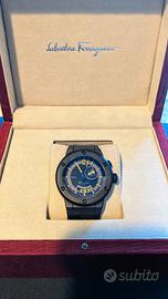 Come nuovo, completo di scatola, orologio uomo Ferragamo F-80, cassa in fibra di carbonio 44 mm, cinturino in silicone, movimento al quarzo. Colore nero opaco. Vendo per inutilizzo.