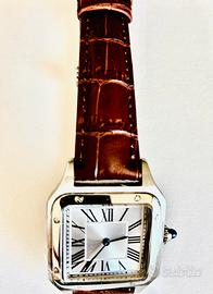 Orologio stile Cartier Santos Dumont al quarzo.Unisex Boucle e quadrante no logo Cinturino vera pelle brown con boucle regolabile. Elegante,di grande effetto,precisione assoluta
