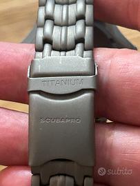 Orologio completamente in titanio, batteria appena sostituita, bracciale ampio, leggeri segni, vetro con lieve filatura tra ore 7 e 8.