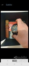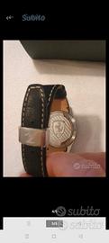 Modello raro per collezionisti, cassa in acciaio satinato e cinturino in pelle, più un altro cinturino di ricambio.