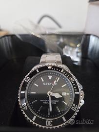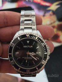 Vendo intramontabile Sector 230, modello "No Limits", un orologio sportivo stile diver, affidabile e dal design deciso. L’orologio è perfettamente funzionante e viene venduto con la sua scatola originale. Caratteristiche principali: Referenza: 3253161016 Movimento: Quarzo di precisione. Cassa e Bracciale: Acciaio inossidabile satinato/lucido. Resistenza all'acqua: 100 metri (10 ATM). Funzioni: Datario a ore 3, lunetta girevole unidirezionale. Design: Progettato in Italia. Condizioni: L'orologio è stato indossato con cura. Presenta i normali segni di utilizzo sulla lunetta e sul bracciale (come da foto), che non ne compromettono l'estetica generale né il funzionamento. Vetro in buone condizioni. Incluso nel prezzo: -Orologio Sector 230. -Scatola originale Sector. -2 maglie del bracciale Batteria cambiata di recente Tutto originale e funzionante compresa la rotellina per cambiare l'orario È stato effettuato il test di impermeabilità nel luglio 2023 come scritto negli scontrini da negozio specializzato