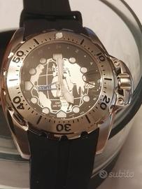 Splendido quanto introvabile SECTOR 600 GMT Diver 200MT denominato "MONDO RARO" periodo 90/99 con movimento svizzero al quarzo top di gamma ETA 805.161 V8 IC5. Calibro: 805.161. Dial molto professionale e tecnico in bellissimo abbinamento nero/grigio met. con sfere e indici luminescenti a pallettoni in perfetto stile diver, lancetta GMT celeste. Indossato poche volte, senza segni particolari, vetro integro; è quindi considerabile in perfette condizioni come al NUOVO. Cassa 43mm all Stainless steel, elegante corona protetta e logata. Completo di documenti in sua scatola originale FULL-SET!