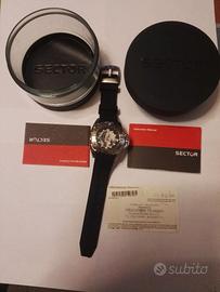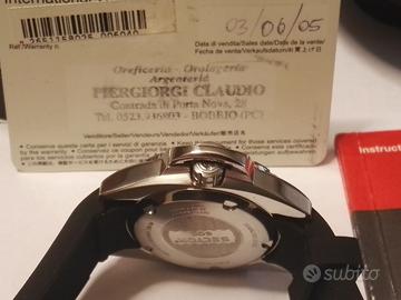 Cinturino in silicone aftermarket (molto simile all'originale che tendeva a sgretolarsi prematuramente) ma parimenti corredato da sua fibbia originale Sector serie 600 in acciaio e logata. La batteria (397) è stata appena sostituita da lab.professionalesede in cui sono state pure testate tutte le funzioni che risultano essere in perfetta efficienza.