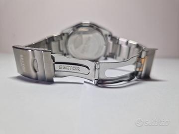 Vendo orologio Sector 695 (modello R3273613001) in condizioni pari al nuovo. Ricevuto come regalo, mai indossato, sempre conservato con cura e completo di scatola originale. Cassa in acciaio con dettagli dorati, quadrante scuro con cronografo, datario e indicatore power reserve. Orologio dal design sportivo ma elegante, adatto sia all’uso quotidiano che a occasioni più formali. Nessun graffio o segno di usura. Prezzo: 160€ trattabili