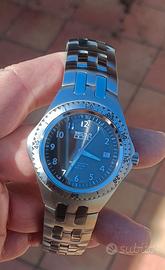 Sector 975 - ref. R2653900045 - quadrante grigio Specifiche: diametro circa 41mm con uno spessore di circa 11,6; misura da ansa ad ansa 44 mm. Bracciale - dedicato - leggermente rastremato: da 22mm a 20mm Cristallo zaffiro fondello e corona logata a vite Ghiera monoblocco - 60 clic Numeri applicati Grado di impermeabilità: 200 mt Quadrante grigio “soleil” (dal vivo è veramente splendido) Quarzo ETA Swiss Made La cerniera di chiusura è sorprendentemente sovradimensionata: spessore che varia da ben 3mm (in prossimità dei perni) a 2mm nella parte centrale della curva. Peso circa 206gr! Misure assolutamente confortevoli, da peso... "massimo", però! Ancora presenti le plastiche sul fondello: un vero NOS ma senza la scatola (che si può avere con un leggero sovraprezzo) Prezzo originario: 410 euro! Possibilità di scambio a mano nelle città di Ortona o Pescara (in quest’ultimo caso, però, solo in giorni lavorativi) Sector di una volta! Acciaio a palate... Qualità a secchiate!