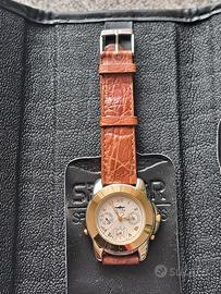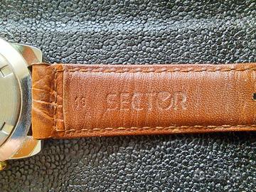 Orologio Sector ADV 2000, cosiddetto "Complicato", con tre contatori: data, giorno della settimana e fase lunare. Movimento al quarzo Swiss Made, cassa in acciaio, fondello a vite. Water resistant 100 Mt. Cassa diametro 40 mm.
