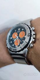 bellissimo orologio Sector exp404 diver sub 200 m Chrono alarm perfettamente funzionante in tutto, tiene bene il tempo ed è molto preciso, vetro nuovo Appena fatto sostituire. Il cinturino originale è in buono stato anche per polsi di circonferenza massima 21 cm. Funziona tutto bene anche il crono e l'allarme. Corona ad avvitare e ghiera a scatti girevole. Cassa da 40 mm senza contare la corona.