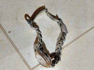 Orologio da donna, modello 550,le lancette si illuminano al buio, realizzato in acciaio e dettagli dorati.