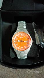 Orologio Sector No Limits Donna in Alluminio Funzionante, è necessario cambiare la pila. DETTAGLI DEL PRODOTTO Alimentazione/Movimento: Al quarzo Tipo carica: Al quarzo Display: Analogico Funzioni: Solo tempo Impermeabilità: 10 ATM water resistant Materiale cassa: Alluminio Colore cassa: Acciaio Colore quadrante: Arancione Materiale cinturino: Alluminio Colore cinturino: Acciaio Diametro cassa (mm): 32 Cassa e bracciale in alluminio, 32mm, movimento al quarzo, Impermeabilità 100m, vetro zaffiro