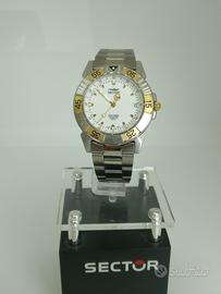 Orologio SECTOR NO LIMITS unisex in acciaio inossidabile nuovo, mai usato, rimanenza di negozio. Con etichette e scatola originale, con garanzia da timbrare.