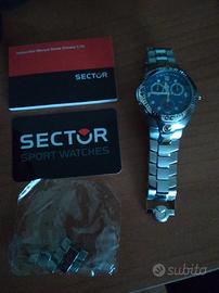 Vendo orologio Sector del 2004 con cinturino in acciaio, maglie di ricambio, istruzioni, scatola e tessera garanzia, unico proprietario, usato pochissimo, senza graffi. Batteria nuova.