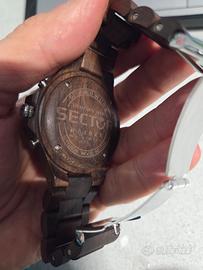 Orologio da polso Sector tondo analogico con vetro in minerale. Cassa in sandalo diametro 42mm. Cinturino in sandalo. Cronografo e movimento al quarzo