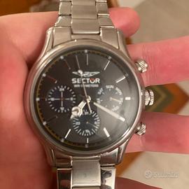 Vendo orologio Sector da uomo in acciaio inox, modello con quadrante nero e bracciale a maglie in metallo.