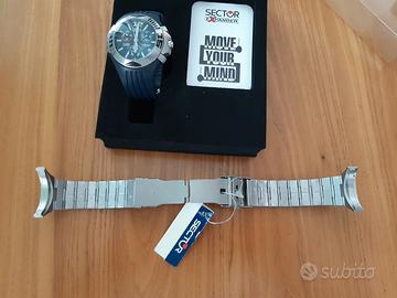orologio sector uomo quadrante blu ,cinturino in gomma come da foto + bracciale in acciaio,orologio in buone condizioni qualche segno senza istruzioni e garanzia