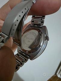 Vendo dalla mia collezione di Seiko vintage un pezzo bellissimo, ref. 7019-6040. Orologio funzionante in ogni sua parte, in bellissimo stato estetico come testimoniato dalle foto ed impreziosito con un bracciale in acciaio Maruman vintage. Tra le funzioni dell'orologio è degna di nota la ghiera interna girevole ed azionabile con la corona. Bellissimo! Per altri Seiko vintage visionate il mio profilo.