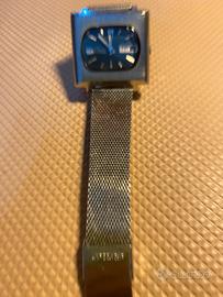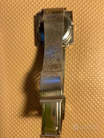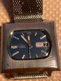 Bello orologio Seiko automatico vintage anni 70 cassa in acciaio da 36.5 mm con data e giorno con scatto rapido per entrambi.. spingendo la corona forte cambia il giorno.. un po meno forte cambia la data…bellissimo cinturino marchiato Seiko .. tipo maglie milanesi.. funzione bene.. segni del tempo su cassa.. è vetro…cassa chiamata televisore!!!