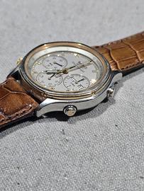 Splendido orologio vintage Seiko 7a38 7260. Una primizia di orologio. Primo cronografo al quarzo. Il 7A38 si riferisce a un celebrecalibro cronografico analogico al quarzo prodotto da Seiko negli anni '80, noto per essere uno dei primi cronografi al quarzo con funzioni "day-date" (giorno e data) e per la sua costruzione interamente in metallo, senza parti in plastica, che lo rende robusto e ricercato dai collezionisti. Perfettamente funzionante. Funzione cronografiche perfette. Possibilità di inviare video. Presente cinturino originale in pelle e pure cinturino in acciaio seiko.