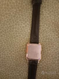 orologio Seiko Quarz , cinturino nero cuoio, cassa color oro