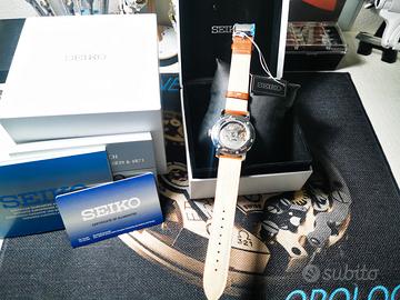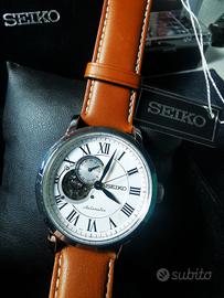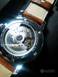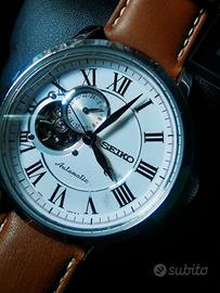 Dalla mia collezione privata propongo orologio Seiko open Heart Review automatico 24h autentico al 100% fullset perfettamente funzionante tiene benissimo il tempo. Cassa acciaio da 40mm quadrante con movimento del bilanciere a vista, vetro minerale, fondello a vista a vite. Bracciale generico nuovo. Classici airlines dovuti all'utilizzo. Per qualsiasi info contattatemi.