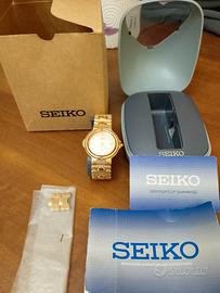 vendo bellissimo orologio Seiko unisex 7N29 F090 prodotto dal 90 al 1998 in acciaio placcato in oro ( la doratura non viene mai via, x l' alta percentuale di cromo) in ottime condizioni diametro della cassa compreso di corona è 42mm