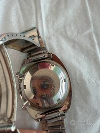 Vendo Seiko 6139-6002 cronografo automatico vintage, referenza ben visibile sul fondello. Orologio d’epoca di famiglia, con bellissimo quadrante giallo, ghiera Pepsi e day-date con disco del giorno in arabo, dettaglio particolare e ricercato per questa tipologia di modello. L’orologio è funzionante e viene venduto nello stato in cui si trova, così come da fotografie. Non è presente scatola né documentazione. Presenta normali segni del tempo e dell’uso, coerenti con l’età dell’oggetto: * vetro con graffi e segni * usura estetica su cassa e bracciale * condizioni generali vintage ben visibili in foto Non risulta revisionato di recente, pertanto non si garantiscono precisione cronometrica, riserva di carica o performance nel lungo periodo. Vendita con formula visto e piaciuto. Annuncio rivolto ad appassionati e collezionisti di orologi vintage. Si valutano proposte serie e coerenti con l’oggetto.