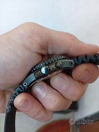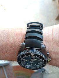 Vendo o valuto scambi stupendo diver Seiko Kinetic 200m professionale. Orologio raro da mercato estero giapponese, da non mancare per collezione seiko. Full set con il suo rarissimo cinturino ( fatto solo per questo modello). Condizioni ottime, accumulatore perfetto dopo poco uso arriva alla carica massima ( tipo 3/4 mesi di autonomia). Cassa perfetta, finitura nera bellissima , non è il classico pvd che si rovina, da segnalare sfriso sul vetro come da foto e microsegno sulla ghiera. 42,5 / 43 mm, per il resto praticamente perfetto. Movimento ibrido aromatico kinetic con ricarica accumulatore, orologio precisissimo. Completo di scarola , contro scatola, libretto e cartellino. Valuto scambi con diver di mio gradimento, Squale, Citizen promaster, Seiko turtle samurai o altri. Preferisco ritiro a mano ma posso spedire con pacco assicurato, pagamento PayPal o bonifico bancario.