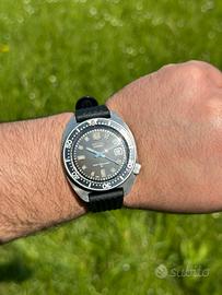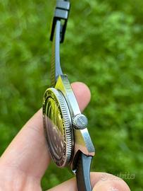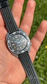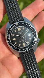 SEIKO “SLIM WILLARD” – Ref. 6105-8000 Un’icona della diver giapponese in versione più compatta ed elegante, perfetta per chi cerca il fascino vintage senza rinunciare alla vestibilità quotidiana. Caratteristiche tecniche: * Modello: Seiko Automatic Diver * Referenza: 6105-8000 * Movimento: Automatico Seiko cal. 6105B * Carica: automatica (no carica manuale, no hacking) * Cassa: acciaio inox (Stainless Steel) * Diametro: 41 mm senza corona * Spessore: 12 mm * Lug width: 19 mm * Vetro: Hardlex originale * Ghiera: girevole unidirezionale nera * Anno : luglio 1968 * Quadrante: nero con indici applicati e lume al trizio * Funzioni: ore, minuti, secondi, data a ore 3 * Impermeabilità: 150m Proof (come da configurazione originale dell’epoca) * Fondello: a vite con incisioni originali Seiko * Cinturino: uncle originale Revisione marzo 2026 📍 Condizioni: Ottime condizioni Mai lucidato