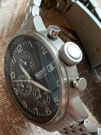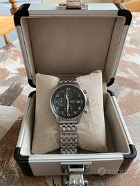 Orologio da uomo , cronografo, meccanica Citizen Pro al quarzo, acciaio satinato opaco, ghiera centrale girevole filettata, quadratini funzionali cronometrici, Condizioni eccellenti, vetro zaffiro concavo, appena cambiato la batteria, controllato.Scatola in alluminio.