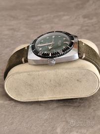 splendido orologio Sicura carica manuale movimento EB 8021 N vintage anni 70 quadrante verde cinturino verde molto elegante revisionato e funzionante