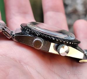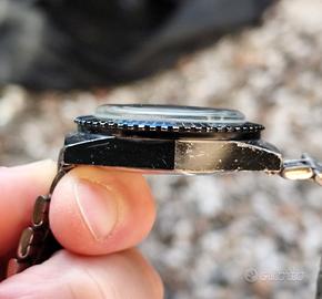 l'orologio si presenta in condizioni ottime per la sua età , la cassa cromata da 41 mm non presenta problematiche di corrosione o danneggiamenti, il bracciale è un generico degli anni 70 in perfetto stile , ghiera girevole anch'essa in ottimo stato, la stessa viene bloccata dalla corona a vite a ore 4 , la corona a ore 2 serve per caricare l'orologio che incassa calibro manuale perfettamente funzionante e revisionato circa 5 anni fa. quadrante in stato più che ottimo , con viraggio degli indici, (le lancette sono state ritriziate) .