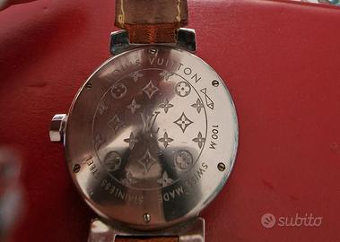 orologio louis vuitton tambour , gmt, automatico ,mm 39,5 referenza Q11310 cinturino in pelle non originale, come nuovo non segni di usura