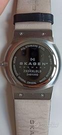 Collezione Grenen, cassa in acciaio satinato mm.37, quadrante nero, vetro minerale, movimento con indicazione anche delle 24 ore e datario, cinturino in pelle con chiusura ardiglione, impermeabilità 3 atm.