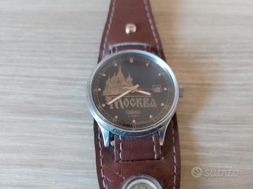 Orologio a carica manuale Slava, cinturino in pelle originale con bussola,cassa in acciaio 36 mm, vetro plexi perfette condizioni, corona a pressione, ottime condizioni e perfettamente funzionante