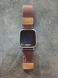 Vendo orologio da donna Garmin Venu SQ colore lavanda + cinturini originali di scorta. Presenza di alcune righe sullo schermo (come da foto) che non pregiudicano la visibilità dello schermo .