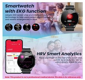 Smartwatch combina l'analisi avanzata del grafico cardiovascolare (ECG) con l'analisi multiparametrica di SpO2, pressione sanguigna, parametri metabolici, frequenza cardiaca, stress e qualità del sonno per garantire un monitoraggio continuo e la sicurezza. Orologio Smartwatch uomo che preme il pulsante SOS invia automaticamente una notifica a un contatto di emergenza. (Nota: richiede la connessione al telefono cellulare e l'impostazione di un massimo di 5 contatti).