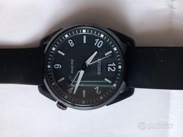 orologio Citizen usato a energia solare, datario funziona, ottimo stato della cassa. Cinturino in gomma leggermente macchiato dietro vedi foto.