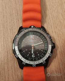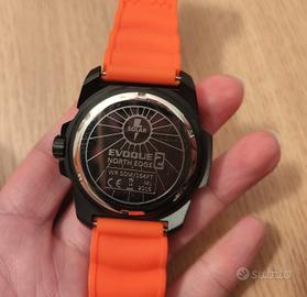 Orologio da uomo a carica solare e impermeabile con cinturino resistente in silicone arancione. Durata batteria fino a 6 mesi. Si ricarica anche con la luce artificiale!