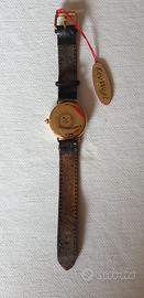 Marca Key West, nuovo (da negozio con scatola originale) In acciaio placcato oro con quadrante ore romane che si può chiudere, cinturino in pelle nero diametro mm. 32, funzionamento a quarzo