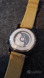 - Cassa in acciaio inossidabile 316L da 42mm e una lente in zaffiro con rivestimento antiriflesso conferiscono a questo orologio da uomo in acciaio inossidabile una silhouette audace in stile "compressor" robusto, raffinato e capace di elevare l'abbigliamento di tutti i giorni da casual ad elegante. - Alimentato dal movimento automatico giapponese robusto Seiko NH35 a 3 lancette con data, offre una riserva di carica di oltre 41 ore. - Con una resistenza all'acqua di 18 ATM e una corona a vite, questo orologio sportivo è pensato per giornate avventurose sulla costa ed in immersione. - La lunetta interna subacquea girevole tridimensionale aggiunge personalità e controllo, mentre gli indici con tecnologia Swiss Super-LumiNova mantengono il quadrante nitido e leggibile anche quando cala il buio e per tutta la notte. - Un tributo a Hugh Bradner e all'invenzione della muta in neoprene, questo iconico design fonde un carattere da orologio subacqueo vintage con gli standard più moderni dell'orologeria.