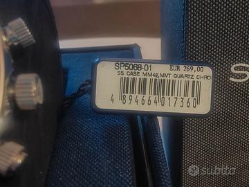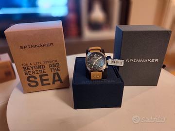 Vendo splendido orologio Spinnaker Hull Chronograph (Ref. SP-5068-01), un cronografo che unisce perfettamente un'ingegneria solida a un'estetica vintage di ispirazione nautica. La cassa "cushion" in acciaio inossidabile conferisce al pezzo un carattere distintivo e robusto, perfetto per chi cerca un orologio versatile da indossare tutti i giorni. Il cuore dell'orologio è un movimento Meca-Quartz giapponese (Seiko VK73), che offre la precisione del quarzo con la sensazione tattile e il movimento fluido di un cronografo meccanico. Caratteristiche Principali: Modello: SP-5068-01 Movimento: Meca-Quartz Giapponese con datario (Grande Data a ore 12) Cassa: Acciaio inossidabile 316L, diametro 42 mm, spessore 15 mm Quadrante: "Fumée" Nero testurizzato con indici luminescenti (Super-LumiNova) Vetro: Minerale bombato con trattamento antiriflesso Cinturino: Vera pelle marrone con cuciture a contrasto (larghezza 22 mm) Resistenza all'acqua: 10 ATM (100 metri) – adatto per nuoto e snorkeling Dettagli extra: Corona e pulsanti cronografici a vite per una maggiore sicurezza. Condizioni: L'orologio è nuovo, completo di cartellino originale (Retail EUR 269,00) e pellicole protettive (se presenti). Inclusa scatola originale e documenti.