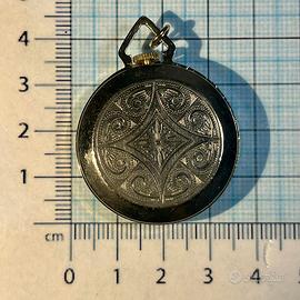 In vendita un affascinante orologio da tasca vintage marchiato "Splendor", un autentico pezzo di orologeria svizzera. Questo orologio ciondolo si distingue per il suo design elegante e intramontabile. Caratteristiche Principali: • Marca: Splendor • Origine: Swiss Made (Fabbricazione Svizzera), garanzia di qualità. • Quadrante: Un bellissimo quadrante color oro spazzolato con finitura sunburst che cattura la luce. • Cassa: Dorata con un elegante anello esterno nero lucido. Il retro è finemente inciso con un bellissimo motivo geometrico e floreale a rilievo, aggiungendo un tocco d'arte e sofisticatezza. • Movimento: Carica manuale (meccanico), per i veri appassionati di orologeria tradizionale. • Portabilità: Dotato di un anello passante robusto a forma di triangolo, perfetto per essere indossato come ciondolo su una catena o attaccato a una catena da tasca. • Dimensioni: La cassa ha un diametro di circa 3,5 cm (escluso l'anello di sospensione). Fare riferimento alle foto con il righello per una visualizzazione precisa delle dimensioni. Condizioni e Funzionamento: L'orologio è usato ma si presenta in eccellenti condizioni vintage. La cassa e il v