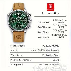 Orologio Sportivo Cronografo POEDAGAR 960 Verde Quarzo Impermeabile Datario Nuovo