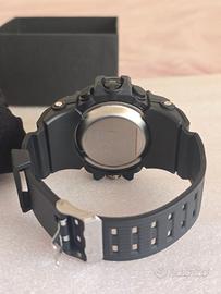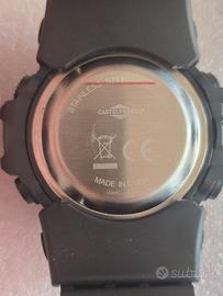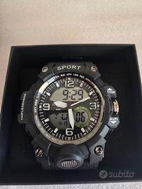 Orologio sportivo nero con cinturino in gomma, "mai usato" con diverse funzioni tra cui doppio display "analogico e digitale" cronometro, calendario e retroilluminazione, sveglia. - "Macchia evidente sopra la scatola" - Volendo si possono avere altre foto - Foglietto di istruzioni - Imballaggio perfetto e curato - Mai usato - Batteria nuova - Resistente all'acqua WR50 "Ma non attendibile" - Cinturino in gomma