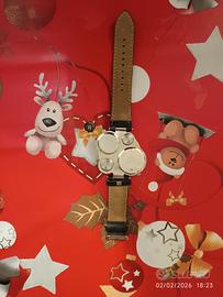 splendido orologio stile steampunk doppio quadrante, con bussola, pila nuova , cinturino in buone condizioni