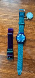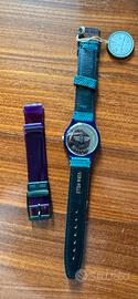 Orologio Immersion Stendardo firmato Enzo Maiorca vintage anni 90. Quadrante blu con bandiere nautiche , movimento al quarzo, resistente all’acqua 50 mt. Doppio cinturino in pelle blu effetto squamato e in plastica viola. Completo di confezione e libretto, mai indossato. Perfettamente funzionante con pila nuova. Per collezionisti e appassionati orologi vintage