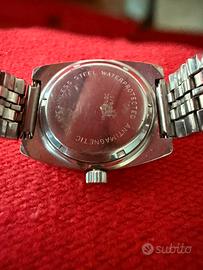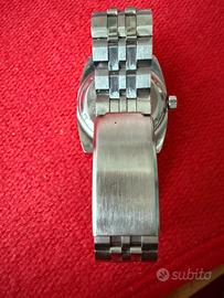 vendo orologio Stenis anni 70 a carica manuale, movimento FHF, datario a ore 3, quadrante color grigio topo molto bello, cassa accaio da 35 mm esclusa corona, bracciale in acciaio.