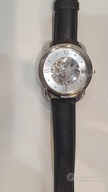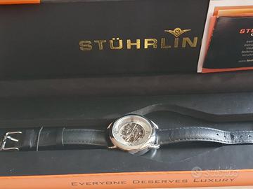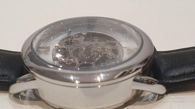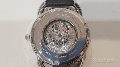 OROLOGIO UNISEX MARCA STUHRLING MODELLO 3990 AUTOMATICO 36MM SKELETON, QUADRANTE QUADRANTE SPAZZOLATO CON CENTRO SCHELETRATO, RESISTENTE ALL'ACQUA FINO A 5 ATM (50 METRI/165 PIEDI) SPESSORE CASSA: 12,75 MM, CORONA SCANALATA FIBBIA AD ARDIGLIONE IN ACCIAIO, DIMENSIONI DELLA CASSA MEDIA (32MM - 41MM),SMUSSATURA LUNETTA FISSA LUCIDA, LANCETTE A FOGLIA SCHELETRATE, CINTURINO IN PELLE NERO. NUOVO MAI USATO E PERFETTAMENTE FUNZIONANTE NELLA SUA CONFEZIONE ORIGINALE