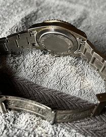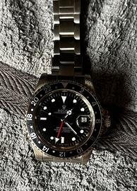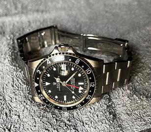 Vendo orologio modello GMT con lunetta nera, quadrante nero e bracciale in acciaio. ATTENZIONE: Si tratta di una replica/omaggio, non è un prodotto originale. Stato: L'orologio presenta segni di utilizzo e usura visibili (come da foto) che gli conferiscono un aspetto vissuto. Caratteristiche: Datario a ore 3 con lente ciclope, ghiera girevole, chiusura a scatto. Perfetto per chi cerca un orologio estetico da "battaglia" senza troppe pretese. Formula visto e piaciuto. Prezzo trattabile