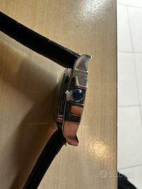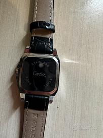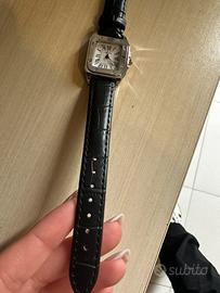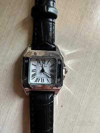 In vendita splendido orologio con cassa quadrata in acciaio inossidabile e lunetta con viti a vista, ispirato al classico design Cartier Santos. Quadrante: Bianco opalino con numeri romani neri e lancette a forma di spada. Cassa: Acciaio inossidabile lucido, in ottime condizioni con minimi segni di usura. Corona sfaccettata. Cinturino: In pelle nera con motivo alligatore, molto elegante e in buone condizioni. Misura 14mm. Parte posteriore del cinturino in pelle scamosciata beige. Chiusura: Fibbia ad ardiglione in acciaio. Fondello: In acciaio lucido, con incisioni "Cartier" "STAINLESS STEEL" e "BACK". Condizioni: L'orologio è nuovo. Funzionante automatico. Contattatemi per qualsiasi informazione o foto aggiuntiva. No scambi, grazie. PREZZO TRATTABILE