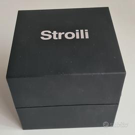 Orologio da uomo Stroili, cinturino di pelle e quadrante neri, cassa in acciaio di 42mm colore argento, movimento al quarzo, resistente all'acqua fino a 50 mt. MAI USATO